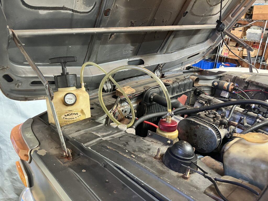 ]]>I put the car back up on the mid-rise lift again and gave the undercarriage another look. There was no wetness around the clutch slave cylinder, the hose between it and the clutch master, or any of the metal or rubber brake lines, so I pulled the rear drums off to check if the rear wheel cylinders were leaking. They were bone-dry. This was as expected, as I was pretty sure I’d replaced these when I resurrected the car in 2018–2019, but with the low quality of parts these days, anything can happen.