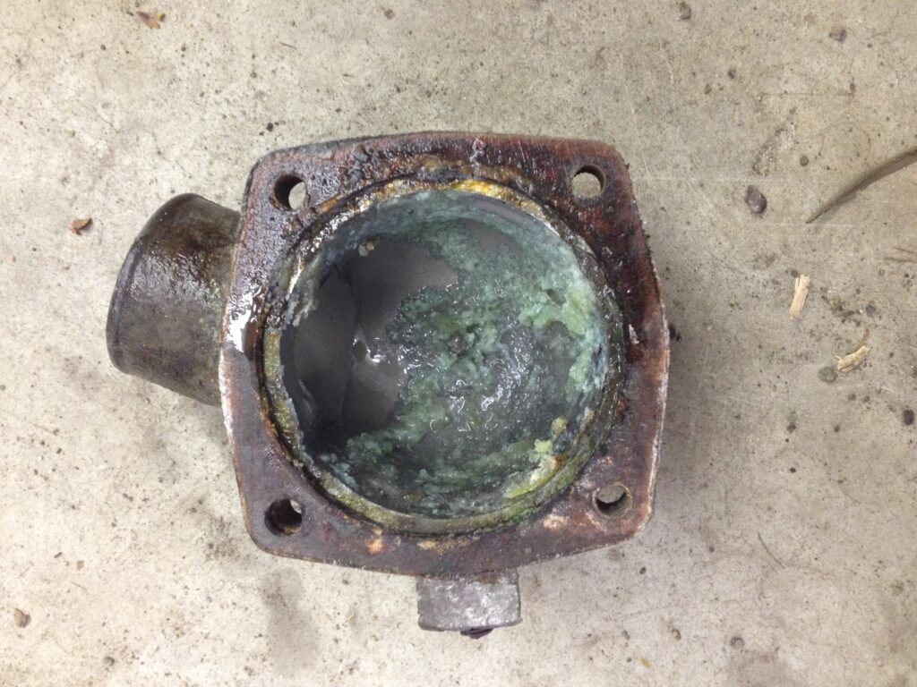 I had some original alloy wheels off a BMW 3.0CS that look the bomb on a Bavaria, but their tires were only marginally better than what was on the car. Fortunately, 195/70R14 rubber is cheap, and for $250 The Tire Rack sent me a set of Sumitomos. Once the new non-homicidal rubber was mounted on the alloys, the car could be driven further than just around the block. I took it up onto the highway one exit. It had plenty of power through all four gears, but the temperature climbed rapidly past the 2/3 mark. This was not surprising, as vintage BMWs typically need a new radiator, water pump, fan clutch, and thermostat to be dependable (and, no, replaced in 1991 doesn’t qualify as “new”). I got it home, drained the coolant, popped the thermostat cover, and found the thermostat was encased in semi-hardened green coolant snot. Further, the thermostat itself was wrong. Because these M30 engines had such a long production run, there’s a lot of mixing and matching of ancillary engine components. There’s an early and a late thermostat, and an early and a late thermostat housing. Both thermostats will physically fit both housings, but if they’re mixed and matched, the thermostat won’t open and/or close correctly. It turned out that, in addition to the green goo, someone had installed the late thermostat in the early housing. I replaced it with a correct 71-degree early thermostat, flushed the coolant, removed every hose, scraped all the corrosion off all the coolant necks, buttoned it up, and tried it again. Repeating the one-exit test, it ran between 1/3 and ½ up the gauge, so I drove it about 30 more miles. It stayed cool.