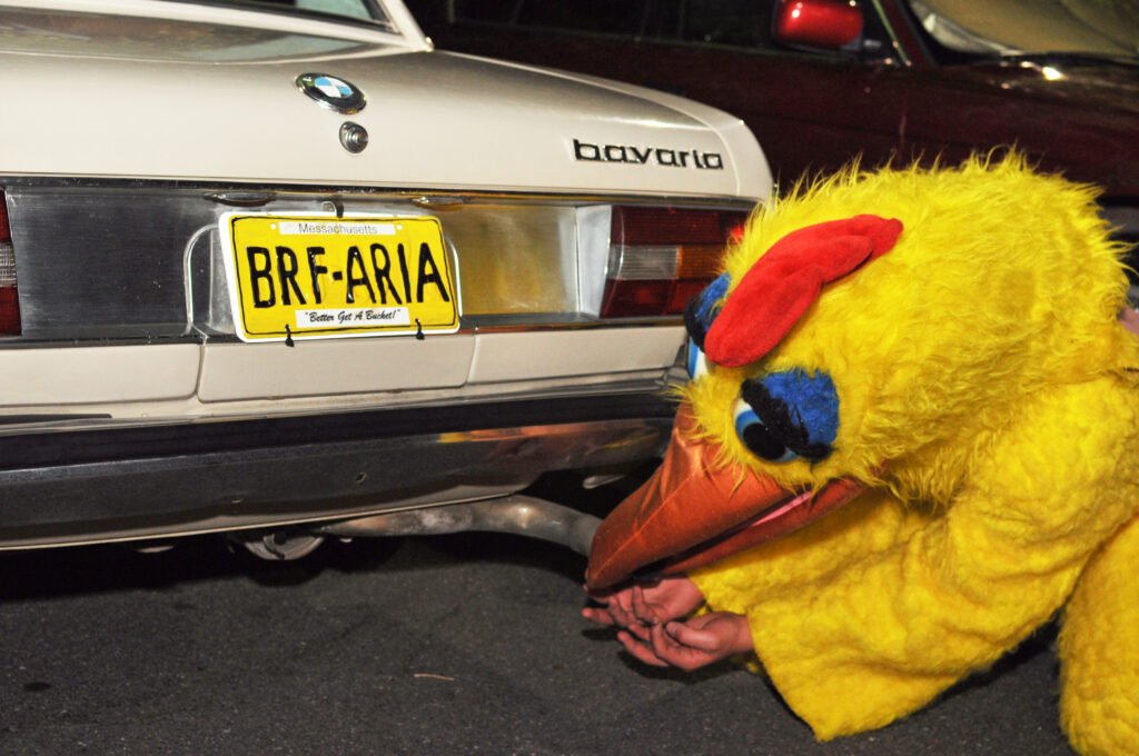 Perhaps it was the car’s vibe that attracted the guy in the chicken suit in the hotel parking lot. From the photos, it looked like Bavaria Lust. I have no other explanation, and those who witnessed the assault have remained strangely quiet about the incident. I guess you had to be there. Seriously. And I was sound asleep at the time.