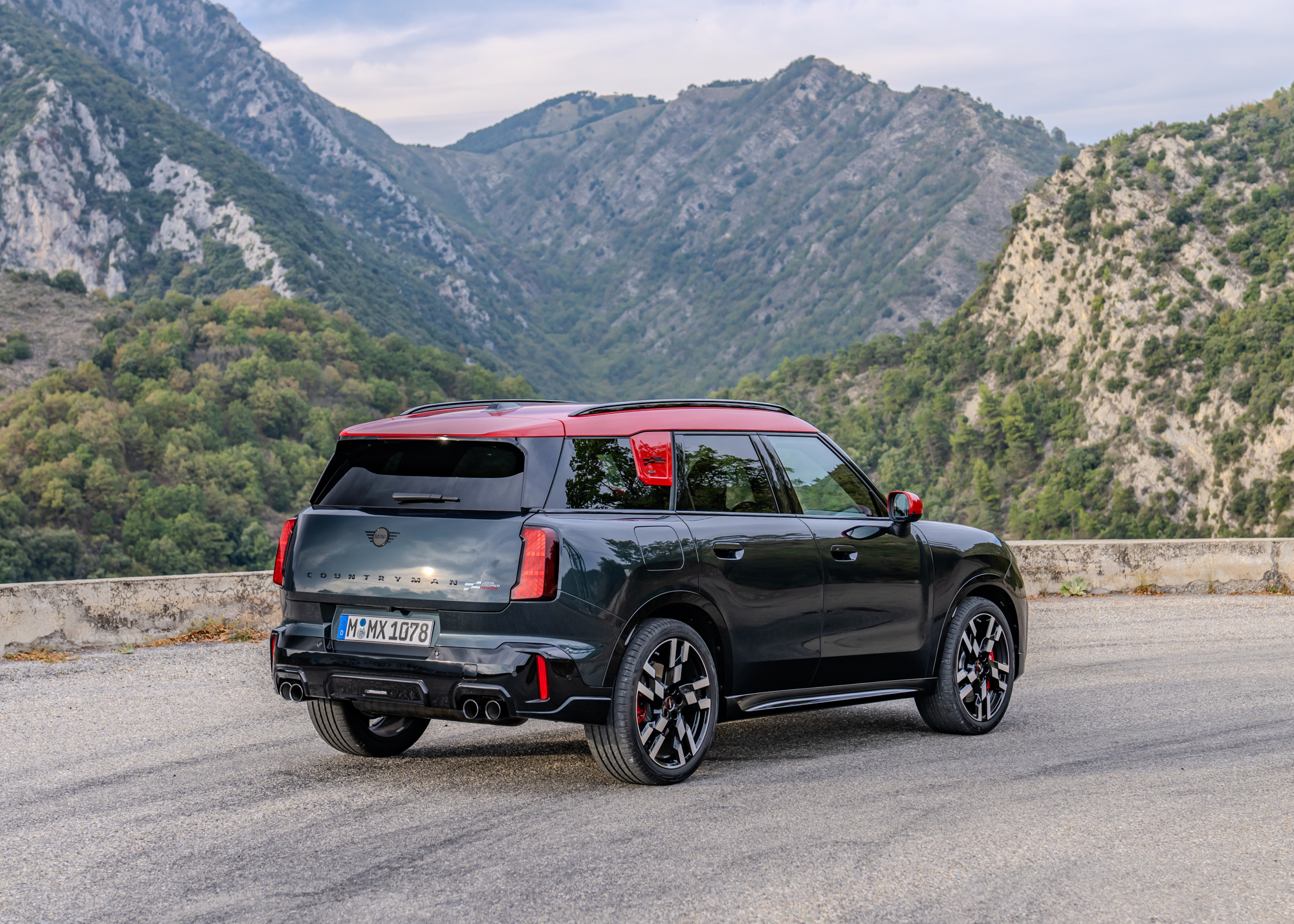 The exterior has been given the JCW treatment, setting it apart from the standard Countryman. MINI explains, “aerodynamic elements with vertical reflectors on the front of the vehicle emphasize its wide stance, while the new MINI LED headlights with horizontal bars in JCW Signature Mode give the vehicle a more expressive look.” A new JCW logo is adorned on the fresh octagonal grille.
