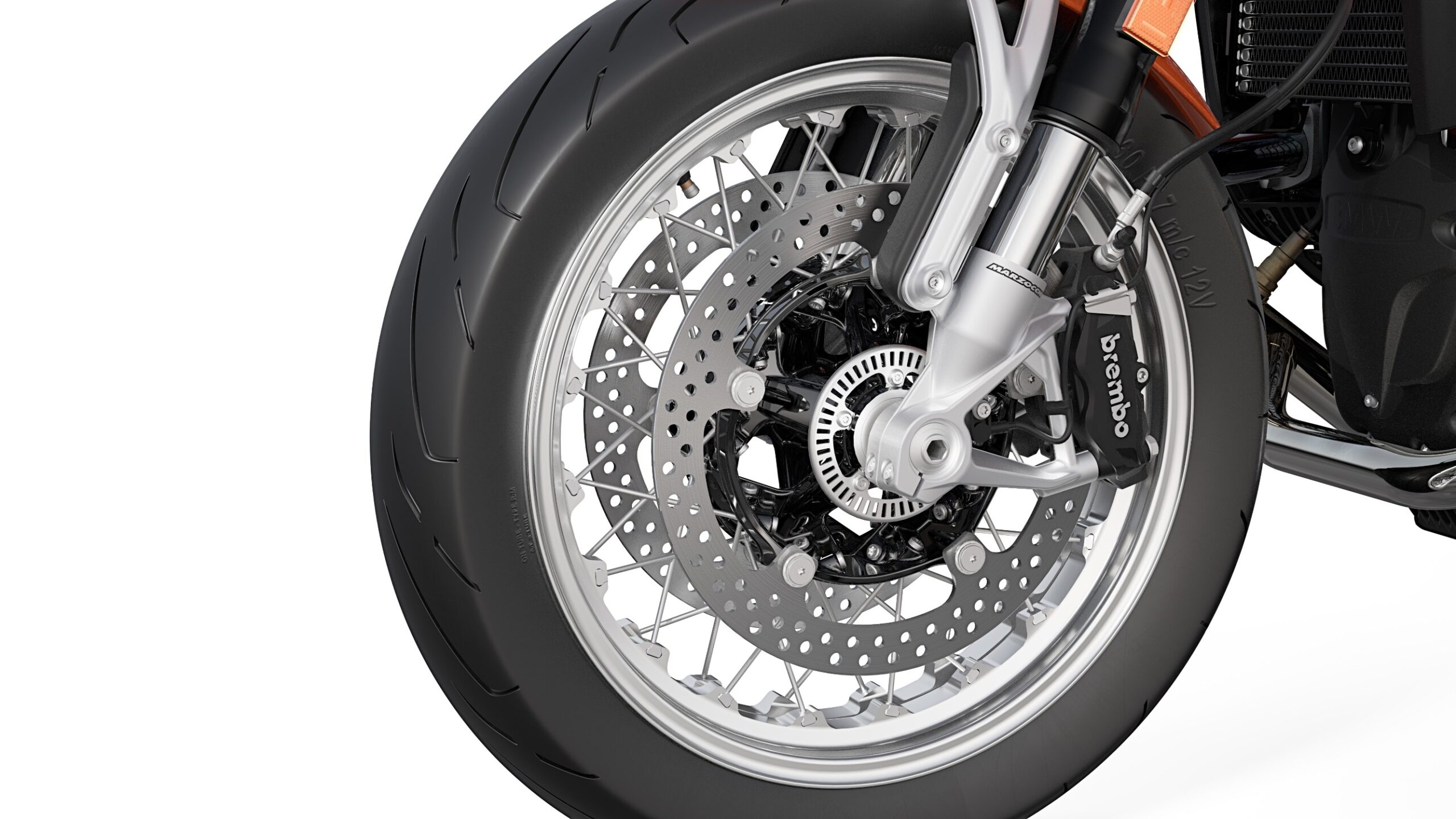 The claim to a sporty retro bike is underlined by the R 12 S with numerous standard product features such as the Option 719 Classic II wheels with wire spokes and shiny, naturally anodized aluminum rims, as well as other high-quality components. The handlebars and fork tubes are in black, and the components of the Billet packs Shadow and Shadow II set, particularly high-quality technical accents. Components of the Billet pack Shadow are the left and right ignition coil covers, the oil filler screw, and the cylinder head covers coated in Avus black metallic matt. The Billet pack Shadow II includes the footrest system including foot brake and gear shift levers, the pillion footrests, the hand brake and clutch levers, the expansion tank covers for the front brake and clutch, as well as the handlebar end mirrors.