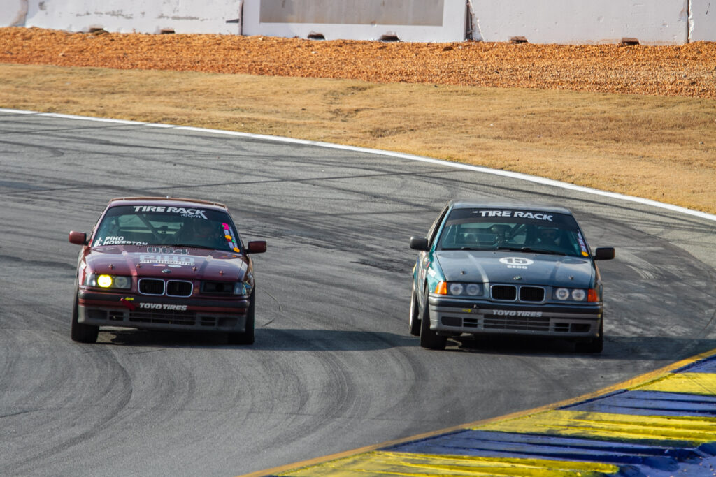 Spec E36 racers Bert Howerton and John Wilkins run sid-by-side [David Williams photo]