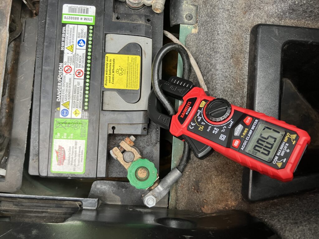 But on the Lotus, I didn’t care about milliamps. If a clamp meter was accurate to within a few amps, that was fine. So I looked on Amazon, found that the $19 clamp meters measured AC current but not DC, and to get one with DC current measurement capability, you needed to kick Jeff Bezos another ten bucks. I clicked and bought this one.