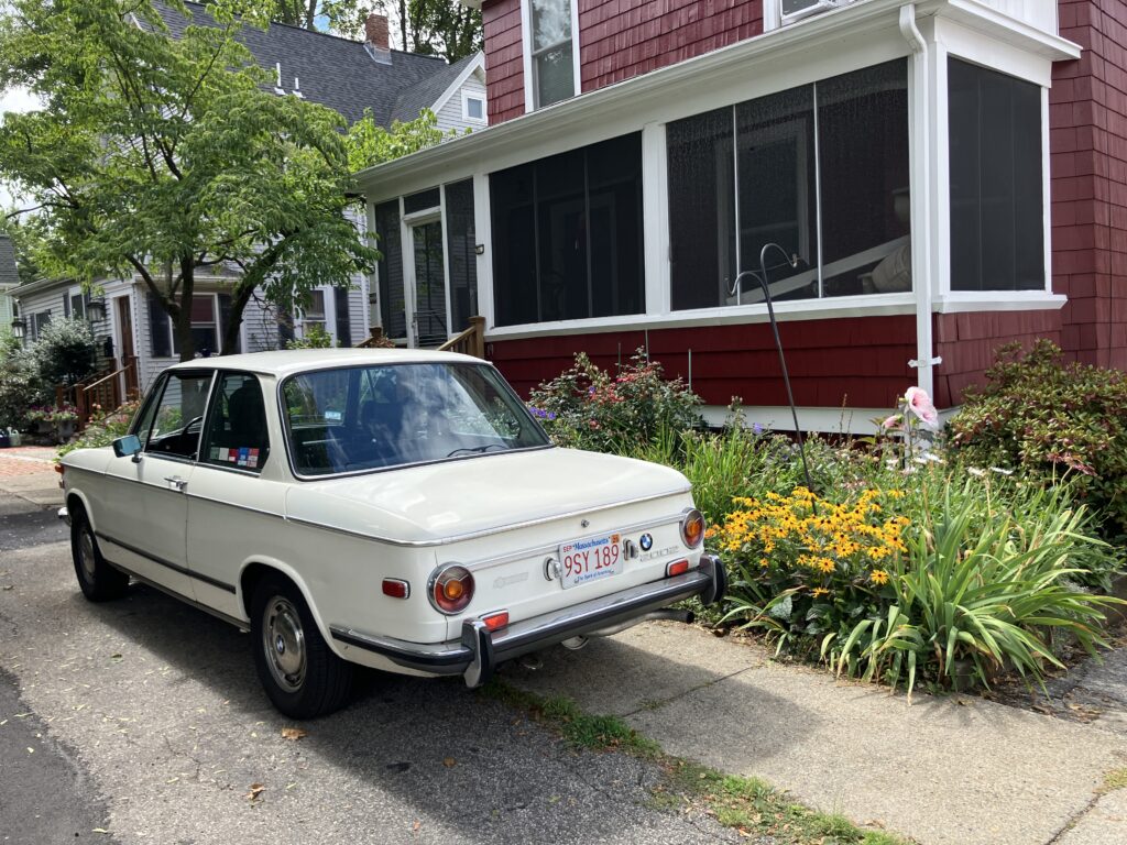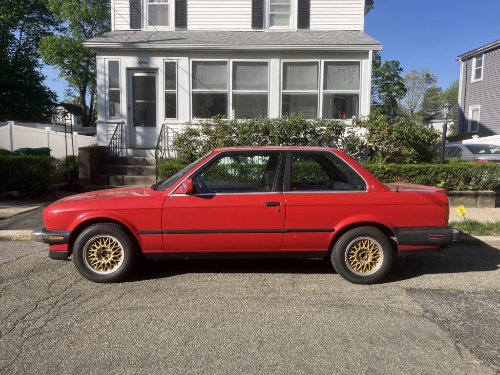 For most of the summer, the go-to vintage BMW was the FrankenThirty. Yes, I brought out the jewel-in-the-crown E9 for German Car Day at nearby Larz Anderson Auto Museum as well as for cars and coffees, but as far as grabbing a fun car to throw my guitar into to drive to a gig, it was all FrankenThirty. The car’s snappy handling and air conditioning made it a joy to jump into. And I never get tired of seeing those gold E30 ‘vert basketweaves against the car’s red paint, my “could this car possibly be any more 1980s” in-joke to myself.