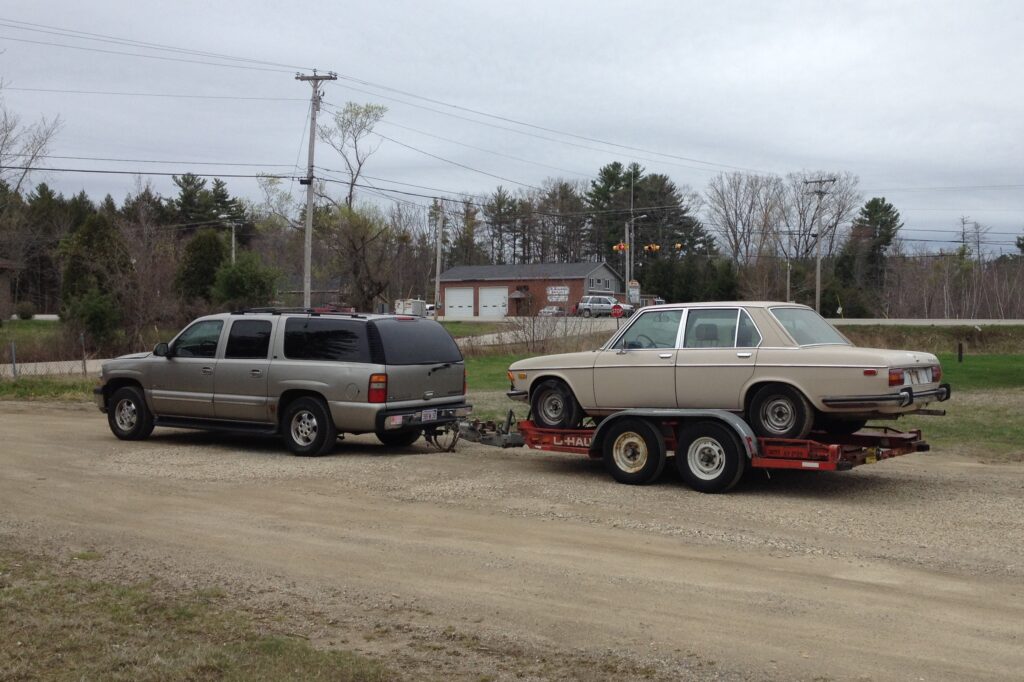 I worked on other car projects over the winter, always conscious of containing costs. In mid-May, I heard from the Bavaria guy. “So… when do you want to pick up your car?” A fair question. With too many cars and not enough income or space, I entertained walking away. Then I thought, no, my reasoning was probably sound. I’ll rent the U-Haul transporter, drive up there with the Suburban prepared to pick it up, and if I see a deal breaker, I’ll just forfeit my deposit.