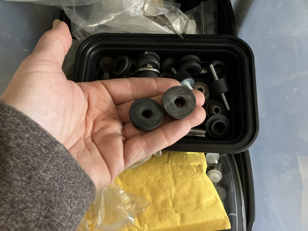 Then the grommets being too big rang a bell. I remembered that I encountered the same thing when I replaced the brake master in Louie (the Ran When Parked 2002tii). Sometimes in these situations I order extras. The garage is, in general, not a terribly well-organized place, but every once in in a while, I’ll play the came of Concentration with like parts and consolidate them in the same container, so I did in fact have a tray-o-grommets and related rubber parts. Sure enough, in it was an apparently new and unused pair of brake master cylinder grommets. Sometimes we get an outsized amount of joy from not having to spend another $6.99 in shipping and wait another two to three days, even though neither the cost nor the waiting time will make any difference in our lives whatsoever. This was one of those times.